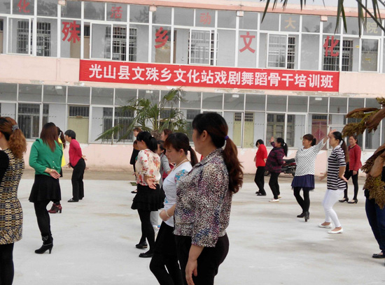 5月9号光山县文化馆在文殊乡进行了戏剧、舞蹈培训,一百余名戏剧和舞蹈爱好者参加。通过几天刻苦的训练,提高了大家的演艺水平,这次活动的举办,获得了文殊乡广大文艺爱好者的赞赏和积极参入,达到了预期目的与效果。为展示这次培训成果和民间文艺团队力量,我们组织一场互动文艺演出,给文艺爱好者一个展示平台的机会,促进大家的相互交流和提高。
